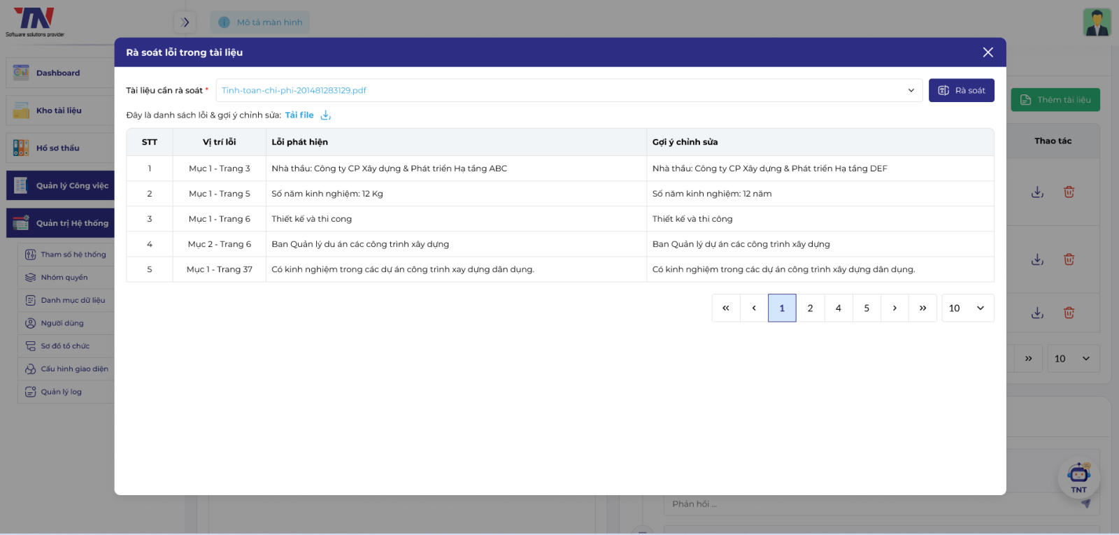 Tự động rà soát, cảnh báo sai sót trong báo giá và nội dung HSDT trước khi nộp.