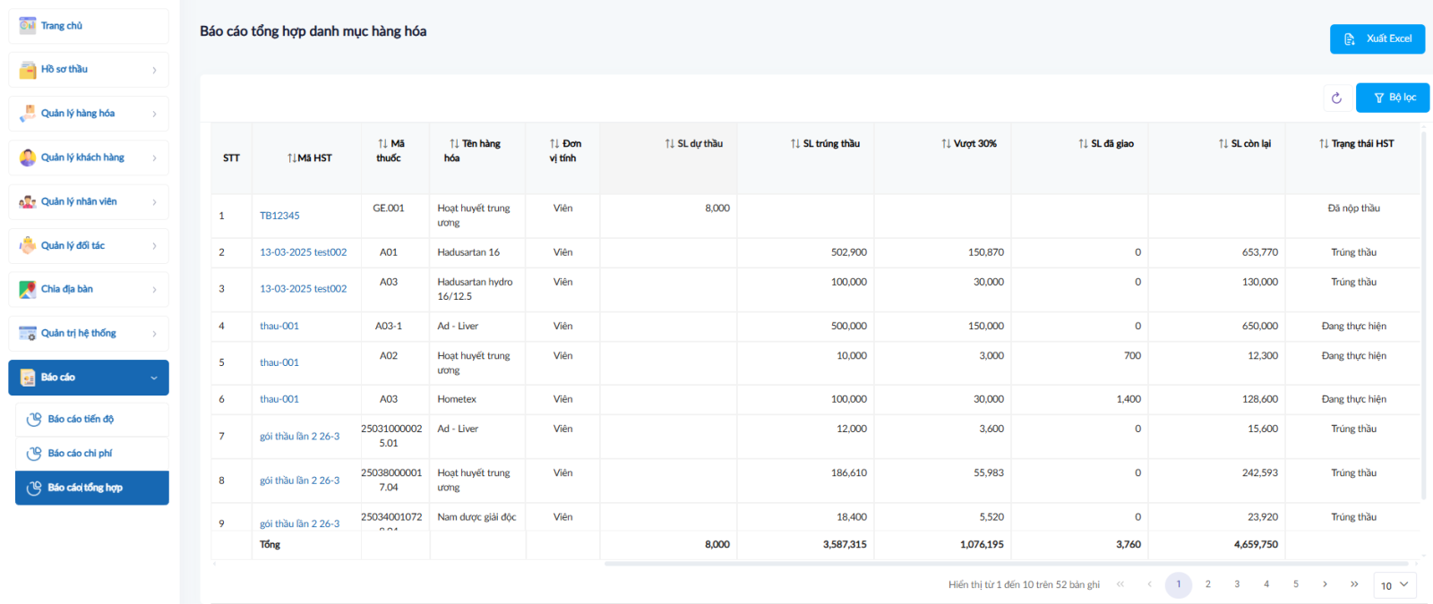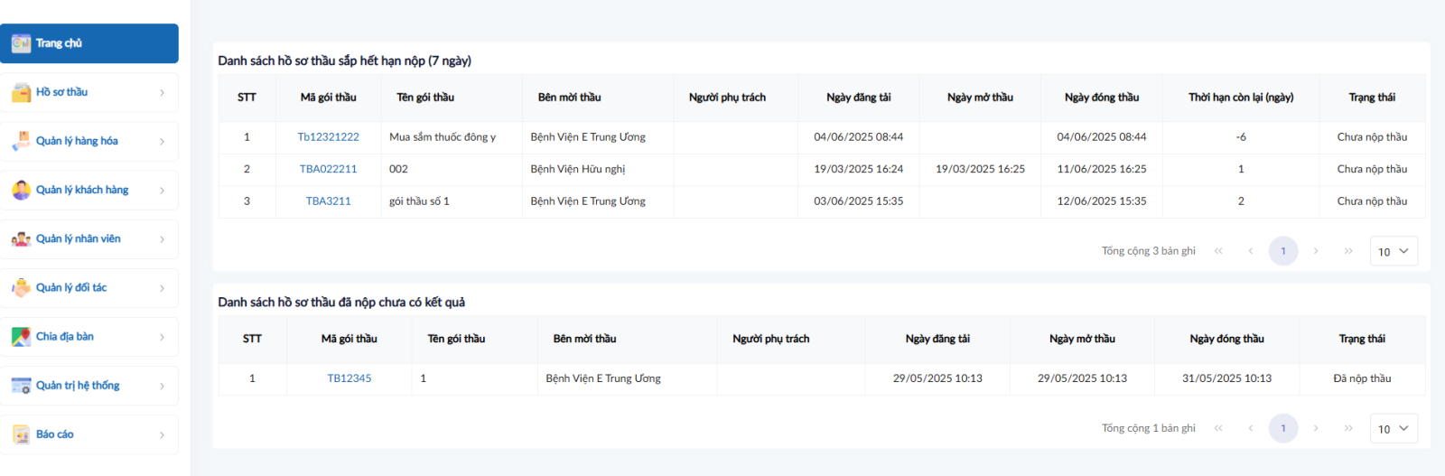 Khách hàng cần 1 hệ thống quản lý toàn bộ các gói thầu cung cấp thuốc cho bệnh viện mà công ty tham gia với các chức năng: